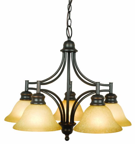 Finish:Oil Rubbed Bronze, Glass:Tea Speckled Glass, Light Bulb:(5)60w A19 Med F Incand Transitional Design with Style Includes 4 Feet of ChainRead more Design House 504167 Bristol 5-Light Chandelier, 19.5-Inch by 22.5-Inch, Oil Rubbed Bronze