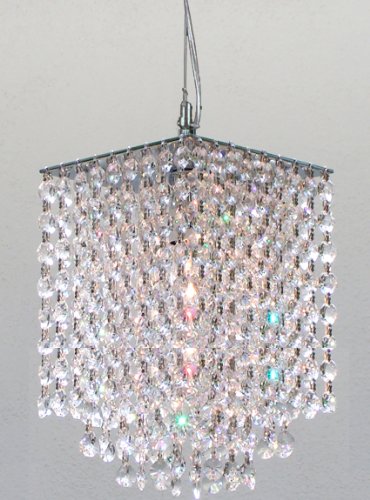 100% Crystal Chandelier Pendant. A Great European Tradition. This beautiful pendant has 1 light and is decorated and draped with 100% crystal that capture and reflect the light of the candle bulb. The timeless elegance of this chandelier is sure to lend a special atmosphere anywhere its placed! PENDANT SIZE H.9" W.6" (EXTENDABLE TO 36" LONG) BULB TYPE: 50w HALOGEN GU10 (NOT INCLUDED).Assembly Required.