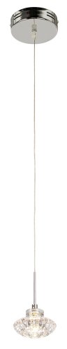 Brighten up an area with this appealing little pendant light. This contemporary mini-pendant has fresh style with a circle design crafted in clear glass. Simple canopy features a chrome finish. A great choice for counters, breakfast nooks and more.