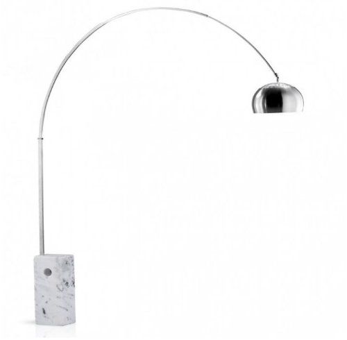 The Arco lamp was designed by Achille Castiglioni and Pier Giacomo Castiglionii for Flos in 1962. The Arco lamp is a floor lamp which provides direct light and satisfies the request of direct illumination without the need to fix it to the ceiling. Most rooms have the electrical output for a ceiling lamp right in the middle of the ceiling, but most dining tables are not placed in the middle of a room. Achille Castiglioni was unhappy because of the cable going from the output to the position where the pendant lamp is fixed to illuminate the table. For this reason he designed the Arco lamp, together with Pier Giacomo Castiglioni.