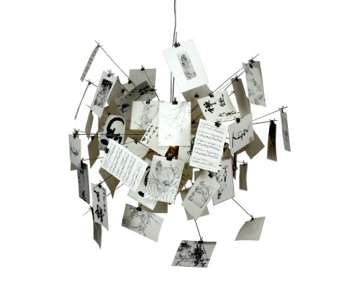 Can attach notes, post cards or photos. Lamp arrives with notes but can also attach you own so as to make this lamp "yours".