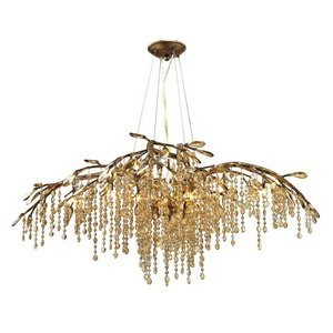 Includes twelve halogen type G4 20 watts candelabra bulbs. Twelve G4 sockets. Total wattage: 240 watt. Electric wire gauge: SVT 18# 105 degree C. Contemporary style. Cascading crystals used to romantically diffuse light. Faceted crystal beads, leaves are amber-tinted and glisten when lit. UL listed for dry location. Made from steel. Mystic gold color. Wire length: 2 x 10 ft.. Cable length: 4 x 8 ft.. Canopy extension: 2.5 in.. Canopy: 6.88 in. Dia.. Glass shade: 2.5 in. Dia. x 5.5 in. H. Overall: 40 in. W x 15.5 in. H. Warranty. Assembly Instructions
