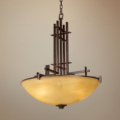 Bronze finish. Gold edge detailing. Takes four 40 watt bulbs (not included). 24" wide. 28" high. 5" wide canopy. Includes 6 feet of chain. Hang weight of 21 3/4 lbs.Read more Metro Collection Four Light Pendant Chandelier