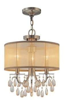 The Crystorama 5623-AB 3-Light Hampton Collection Chandelier is a fashion forward design with soft crystal accents. This can be hung directly from the canopy for a classy semi-flush, or hung as a pendant by the included matching Antique Brass chain. The 5623-AB is a perfect size to hang in a bedroom for a touch of class with the soft glow of the light coming through the Gold Silk Shimmer fabric shade, or to hang above a dining room table or entry for the timeless look of a classic chandelier with the Antique Brass finish accented by the Etruscan Smooth Oyster crystals. To choose the correct size fixture for your dining room table, measure the width of your table and divide it by 2. That will be the approximate size fixture you should have. It should hang about 30-32-Inch above the table. To figure a chandelier size for a room in general, measure the length and the width of the room and add those two figures together. That will give you a fixture size you should look for. It is 17-Inch high x 14-Inch wide, and includes 96-inches of chain and 120-inches of wire. The 5623-AB comes one per package, and requires three 60-watt candelabra base incandescent bulbs (not included), which can be dimmed using a standard incandescent dimmer. In 1958, Abraham Kleinberg founded Crystorama in Brooklyn, New York with the vision of enlightening people's lives through the creation of beautiful crystal chandeliers. From Constitution Hall in Washington DC, to the Palace Theatre in North Carolina, Crystorama chandeliers are enhancing the rooms and halls of historical building and world-renowned establishments. Our product offering ranges from traditional all-crystal fixtures to transitional, contemporary and even youth lighting. More than 50 years later, we continue his vision, expanding the business to become a dominant producer of Crystal, Brass, and Wrought Iron chandeliers in North America with an unsurpassed reputation for design, craftsmanship and value.
