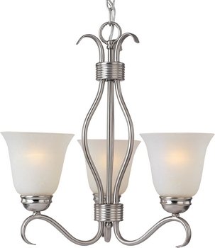Maxim 10123ICSN Basix 3-Light Chandelier Contemporary collection with sweeping arms and clean lines. Offered in Ice glass and Satin Nickel finish or Wilshire glass and Oil Rubbed Bronze finish.