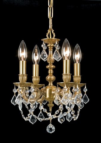 The light from four graceful candelabra fixtures reflects and refracts through gorgeous hand-cut clear crystal. The compact size of this chandelier makes it a perfect choice for smaller dining areas and entryways, or try it in the bedroom or bath for a distinctive accent. This chandelier features an aged brass finish. Another spectacular design from Crystorama.