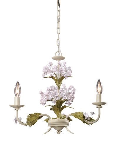 Lilac Chandelier has an antique white finish, and uses three 60-Watt candle bulbs. Hangs 17-Inch; 20-Inch diameter. The comforting elegance of grander times and the classic furnishing designs of gracious living converge into a traditional style marked by its ability to adapt to your changing lifestyle and decor. Lighting is one of the easiest ways to set a mood; it can radiate romance and intimacy or create a dramatic visual effect by spotlighting artwork or architecture. Lighting can also complement a room's decor while letting you express your style… and with Sterling Industries you're sure to find just the light you're looking for. Sterling Industries was founded in the mid-1990s to fulfill a dream, and creativity and imagination have become the founding pillars of business. Sterling strives to incorporate inspiration from around the world into forward fresh home accents.